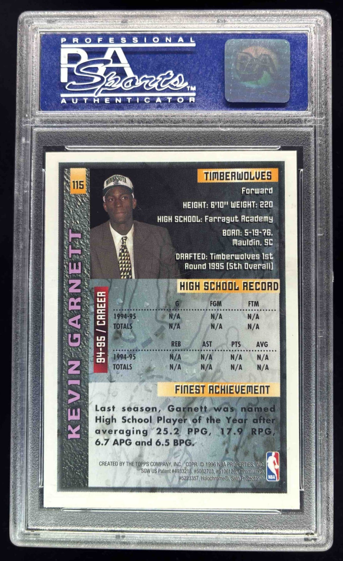 1995-96 Topps Finest #115 Kevin Garnett RC PSA 10