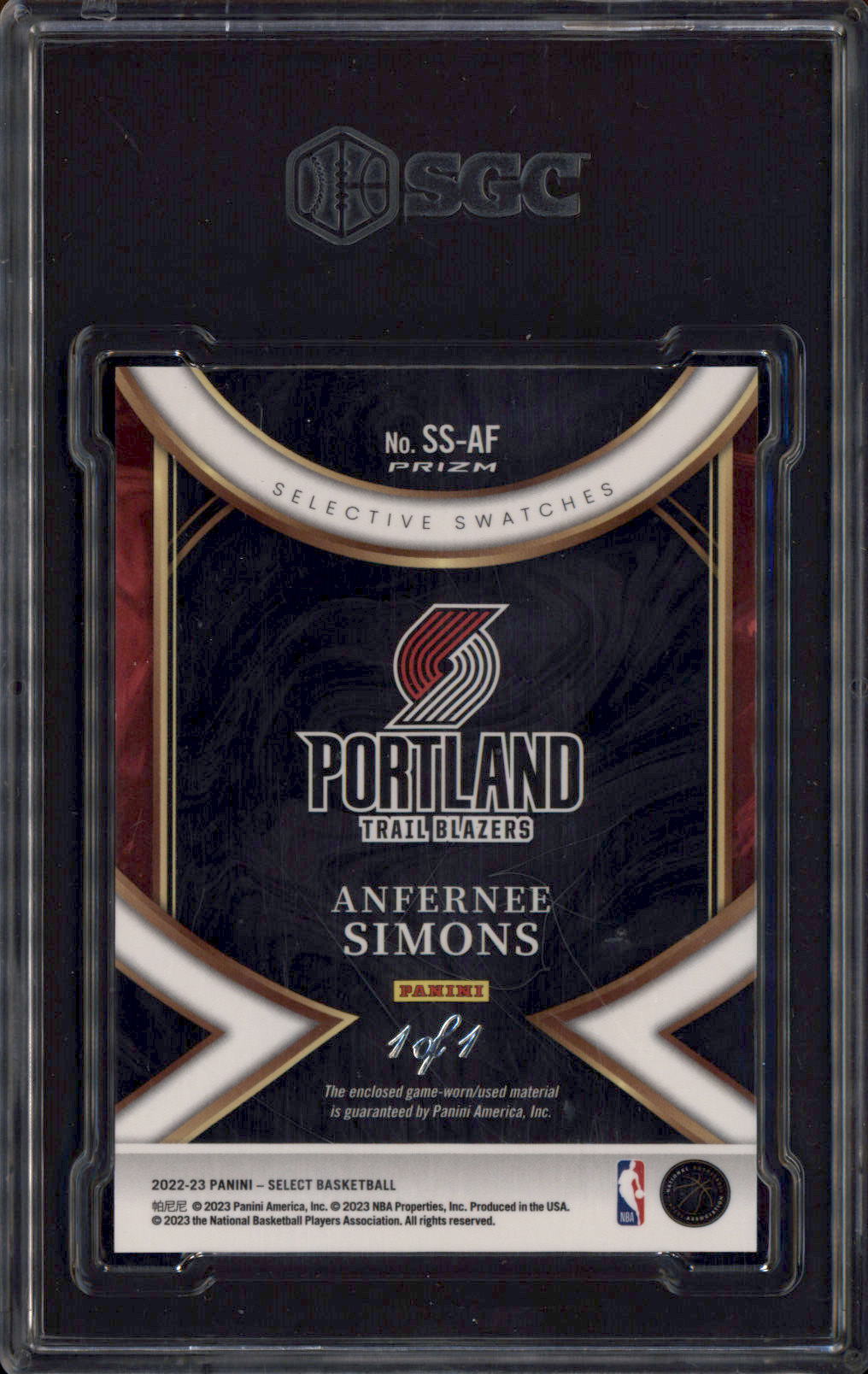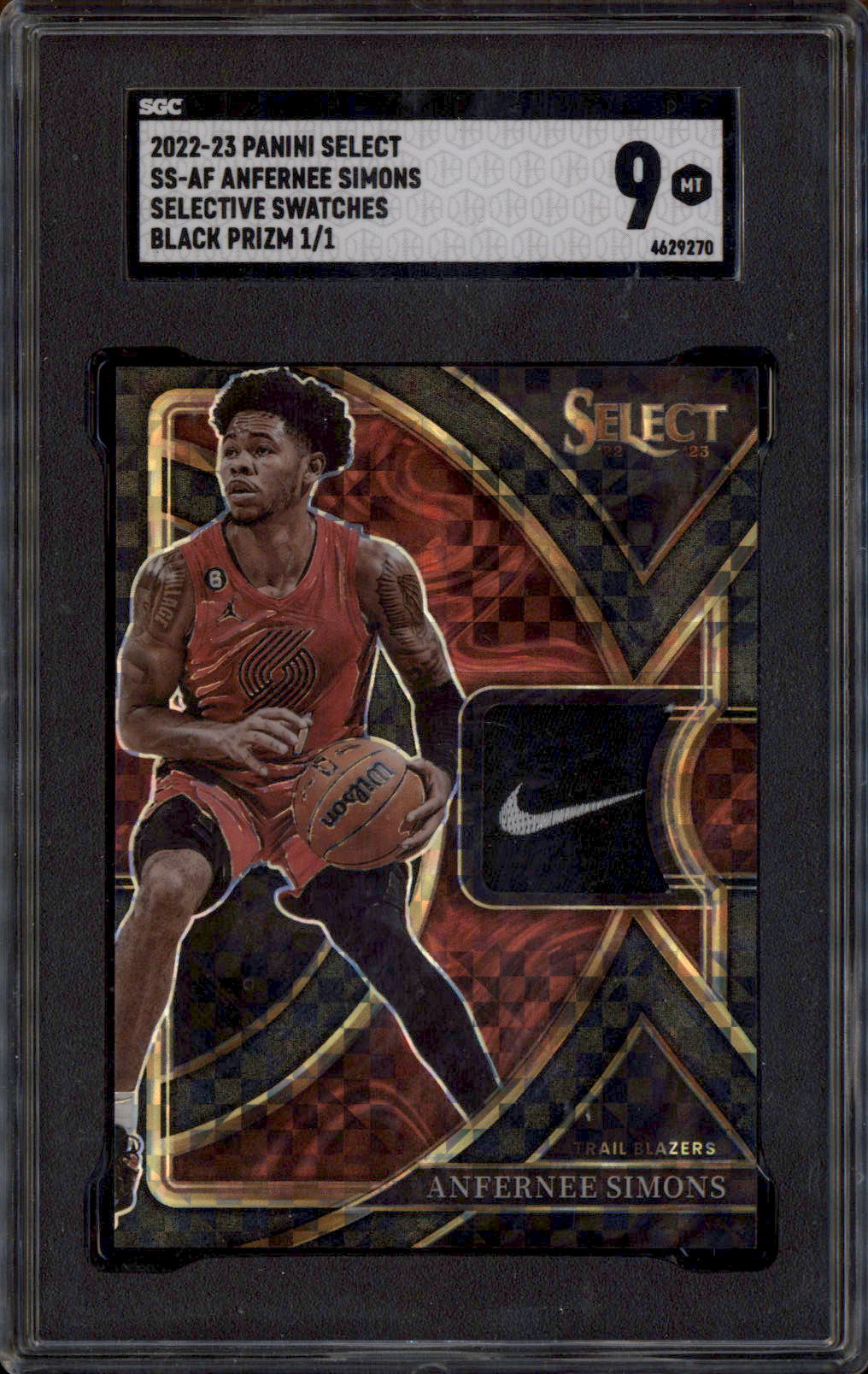 2022 Select Selective Swatches Black Prizm Anfernee Simons 1/1 SGC 9