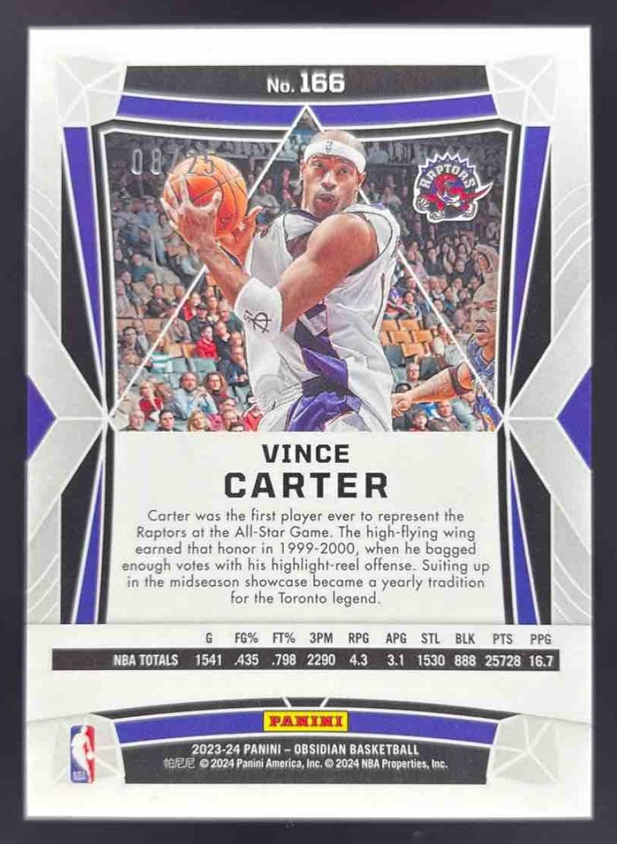 2023-24 Panini Obsidian Electric Etch Green #166 Vince Carter /25