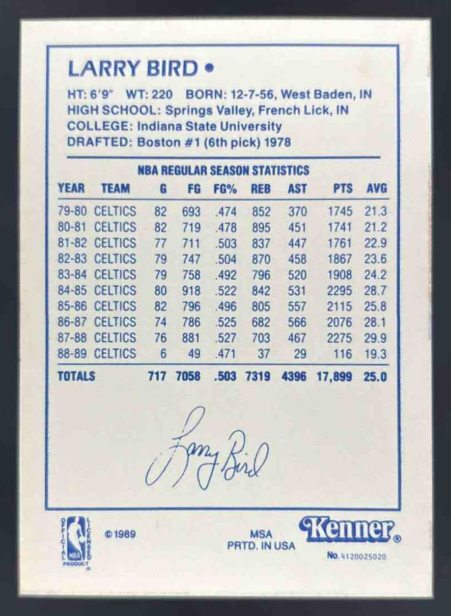 1989 Kenner Starting Lineup Cards One on One Larry Bird