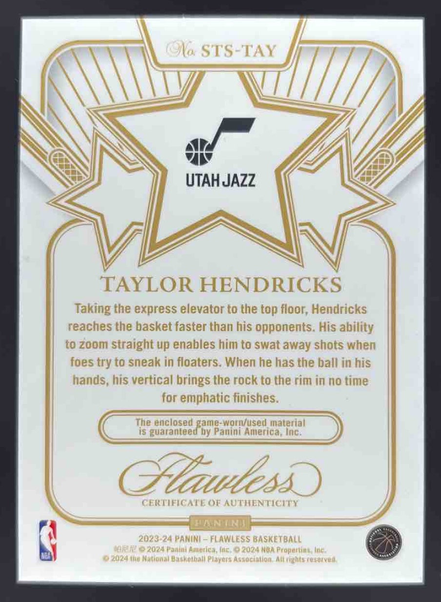 2023-24 Panini Flawless Star Swatches #STS-TAY Taylor Hendricks RC /10