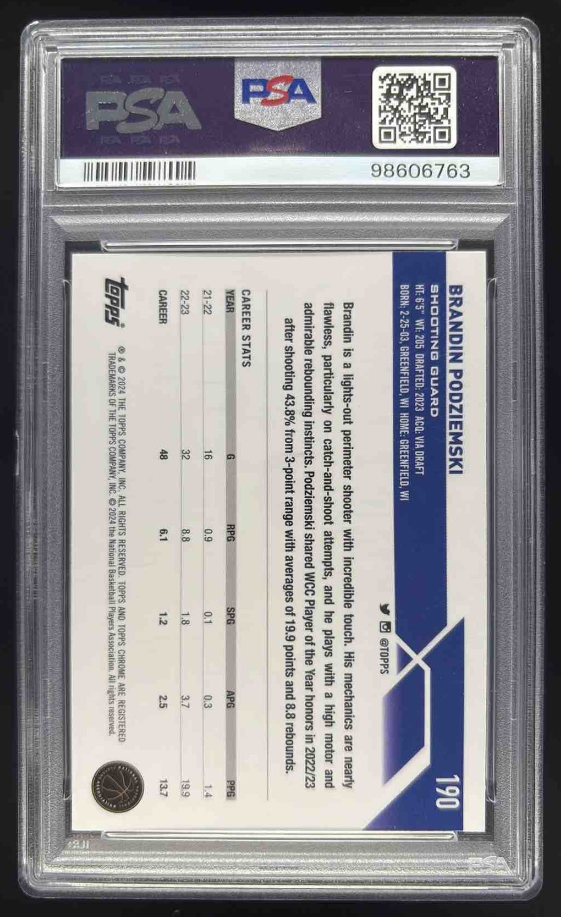 2023-24 Topps Chrome Green Topps Refractor #190 Brandin Podziemski RC PSA 9