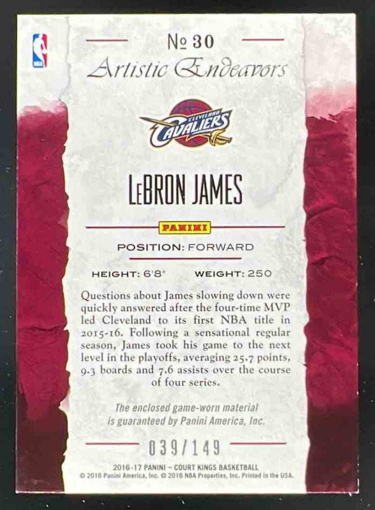 2016-17 Panini Court Kings Artistic Endeavors #30 LeBron James /149