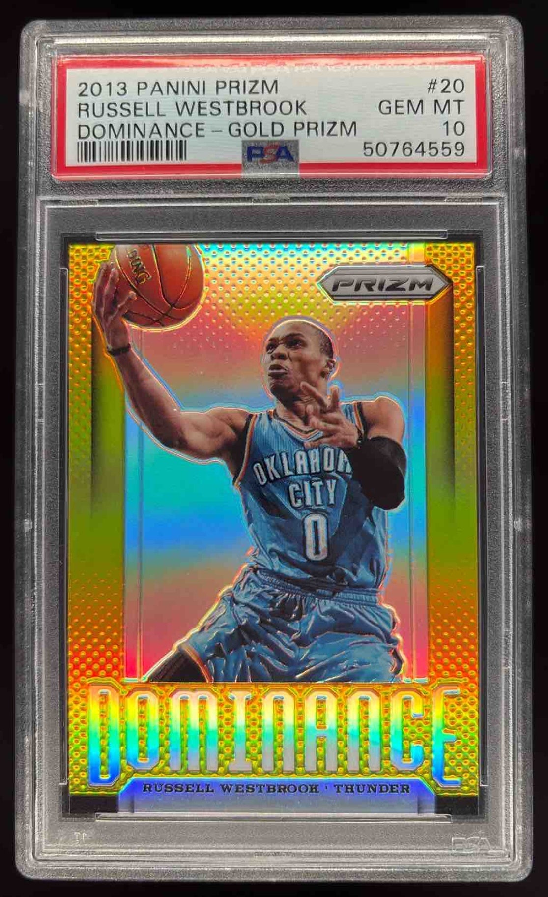 2013-14 Panini Prizm Dominance Prizms Gold #20 Russell Westbrook /10 PSA 10