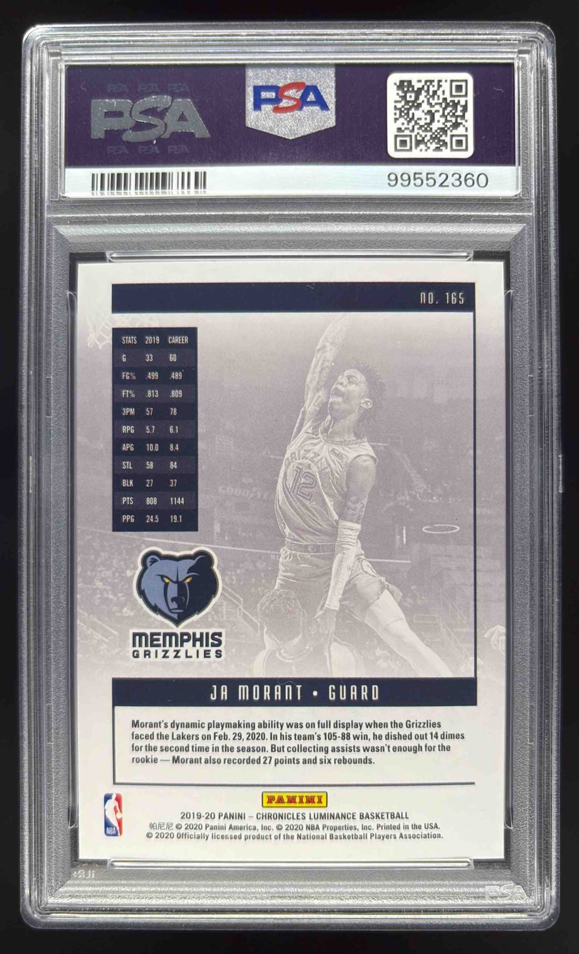 2019-20 Panini Chronicles #165 Ja Morant RC Luminance PSA 10