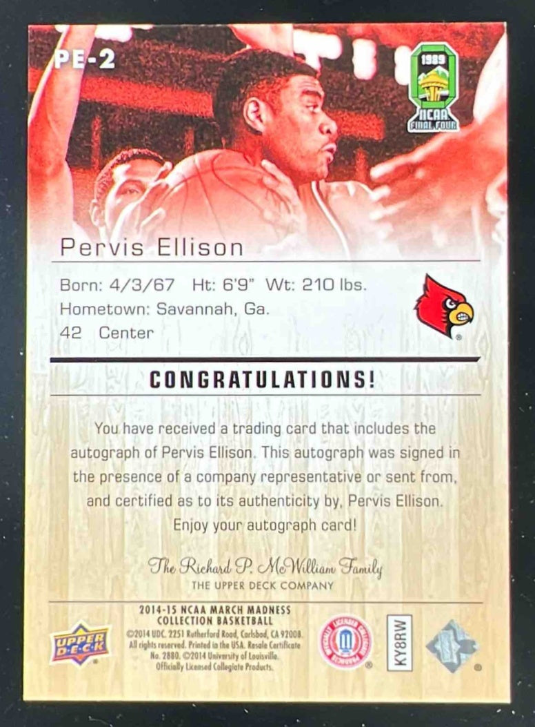 2014-15 Upper Deck NCAA March Madness Gold Foil Autographs Pervis Ellison Auto