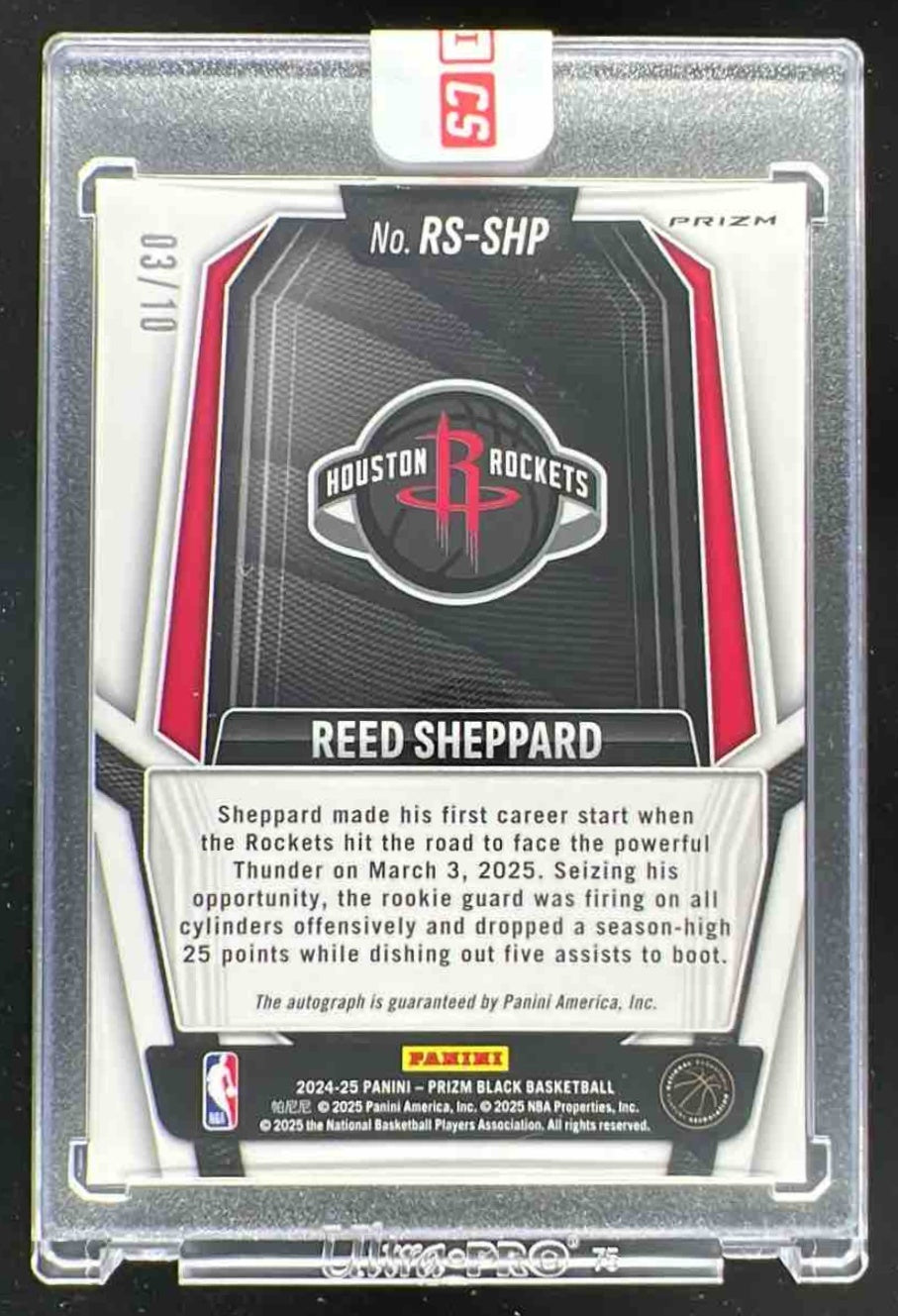 2024 Panini Prizm Black Rookie Signatures Gold Prizms Reed Sheppard RC Auto /10