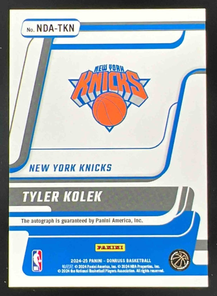 2024-25 Panini Donruss Next Day Autographs #NDA-TKN Tyler Kolek RC Auto