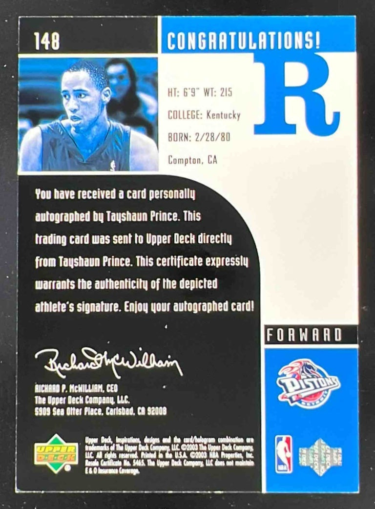 2002 Upper Deck Inspirations #148 Tayshaun Prince Antoine Walker RC Auto /1600