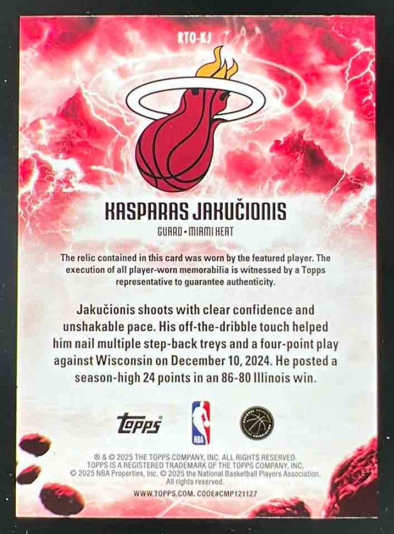 2025-26 Topps Rise to the Occasion Relic Gold Rainbow Kasparas Jakucionis RC /50