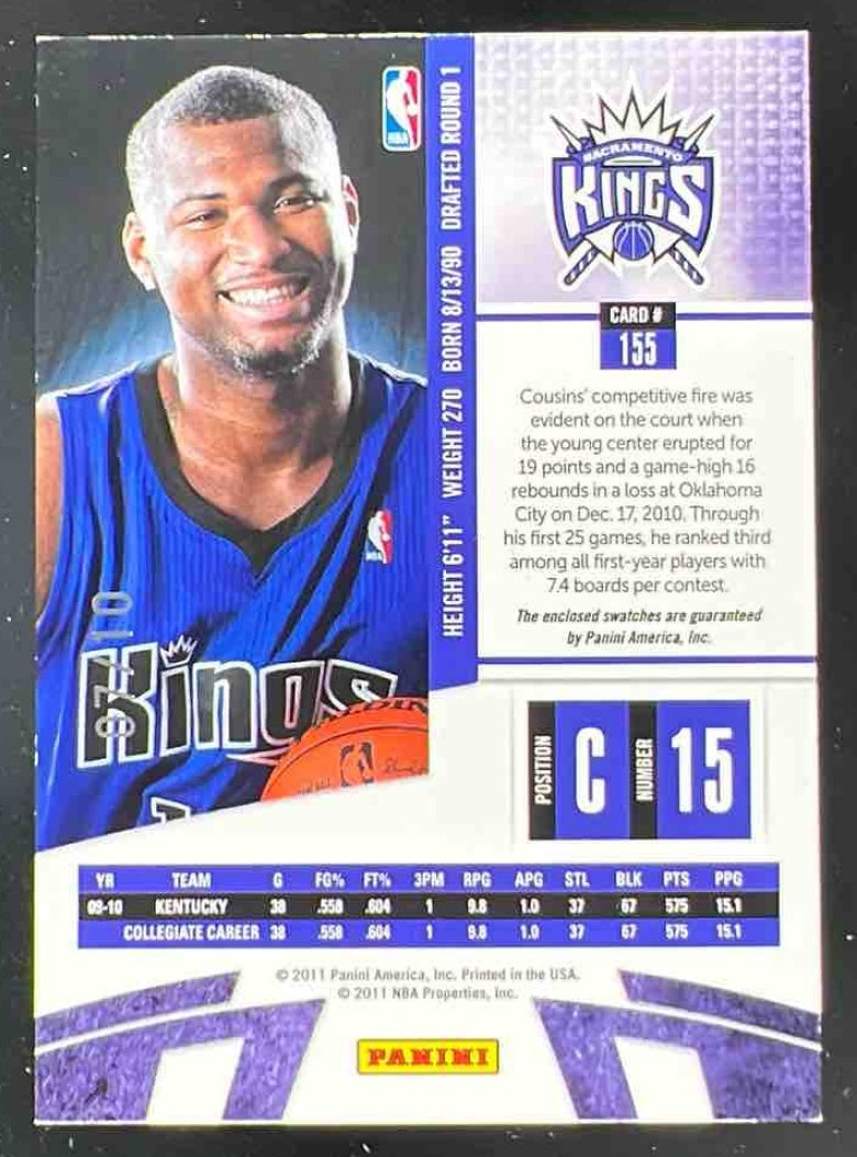 2010-11 Absolute Memorabilia Rookie Materials Prime #155 DeMarcus Cousins RC /10