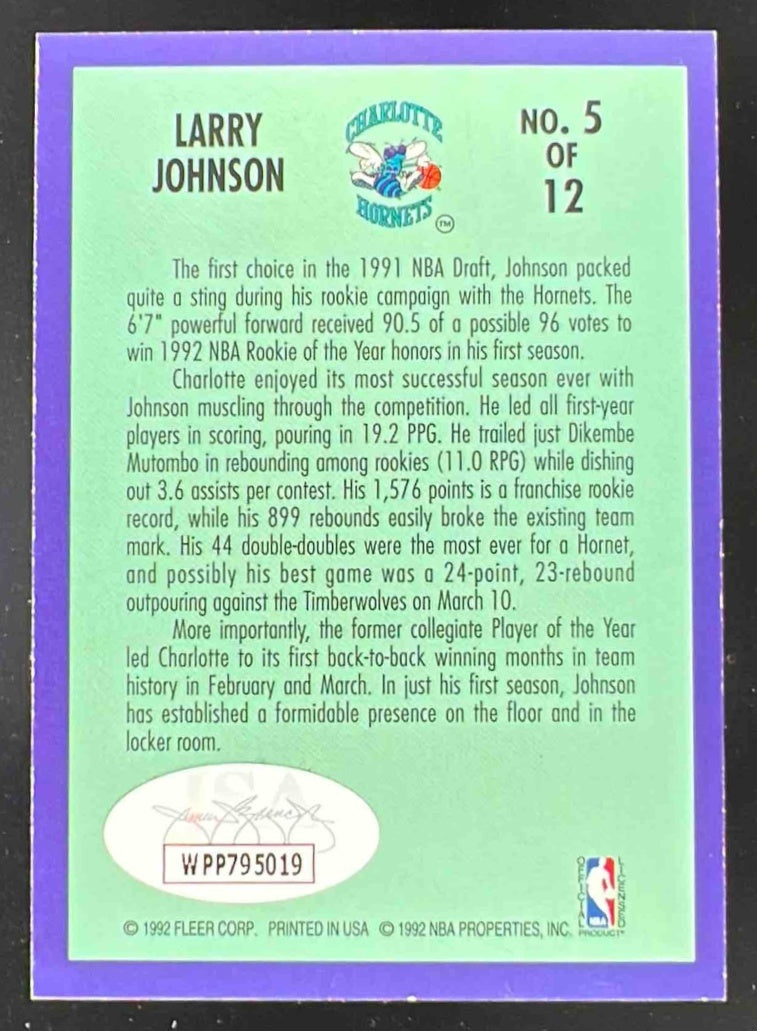 1992-93 Fleer Rookie Sensations #5 Larry Johnson Autograph Auto
