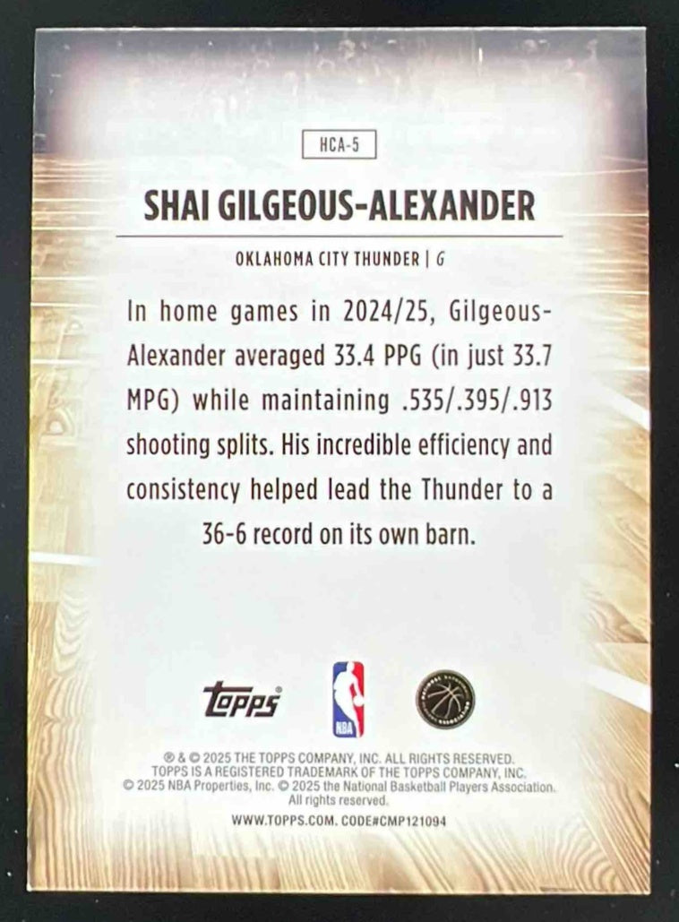 2025-26 Topps Home Court Advantage #HCA-5 Shai Gilgeous-Alexander