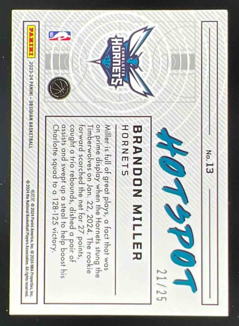 2023-24 Panini Obsidian Hotspot Electric Etch Green #13 Brandon Miller RC /25