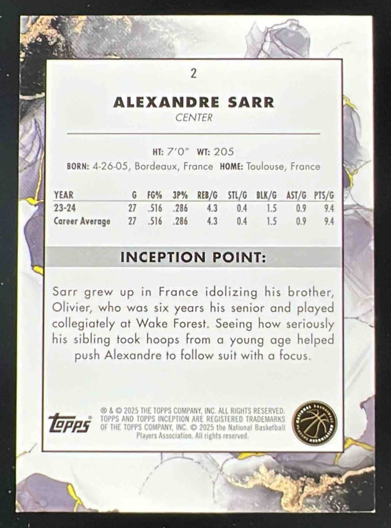2024-25 Topps Inception Pink #2 Alexandre Sarr RC /99