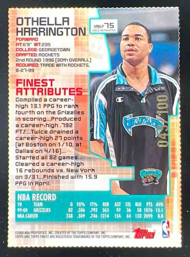 2000-01 Topps Finest Gold Refractors #75 Othella Harrington /100