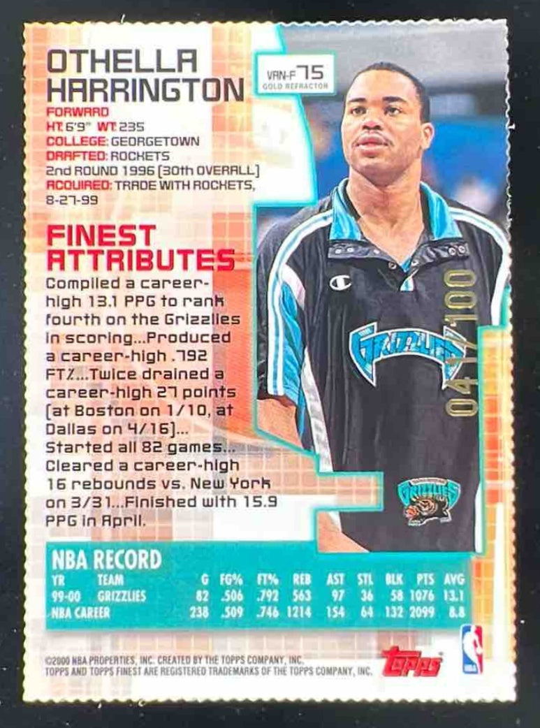 2000-01 Topps Finest Gold Refractors #75 Othella Harrington /100