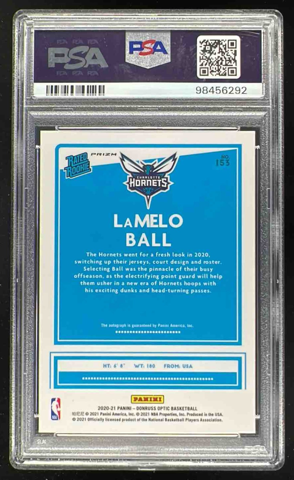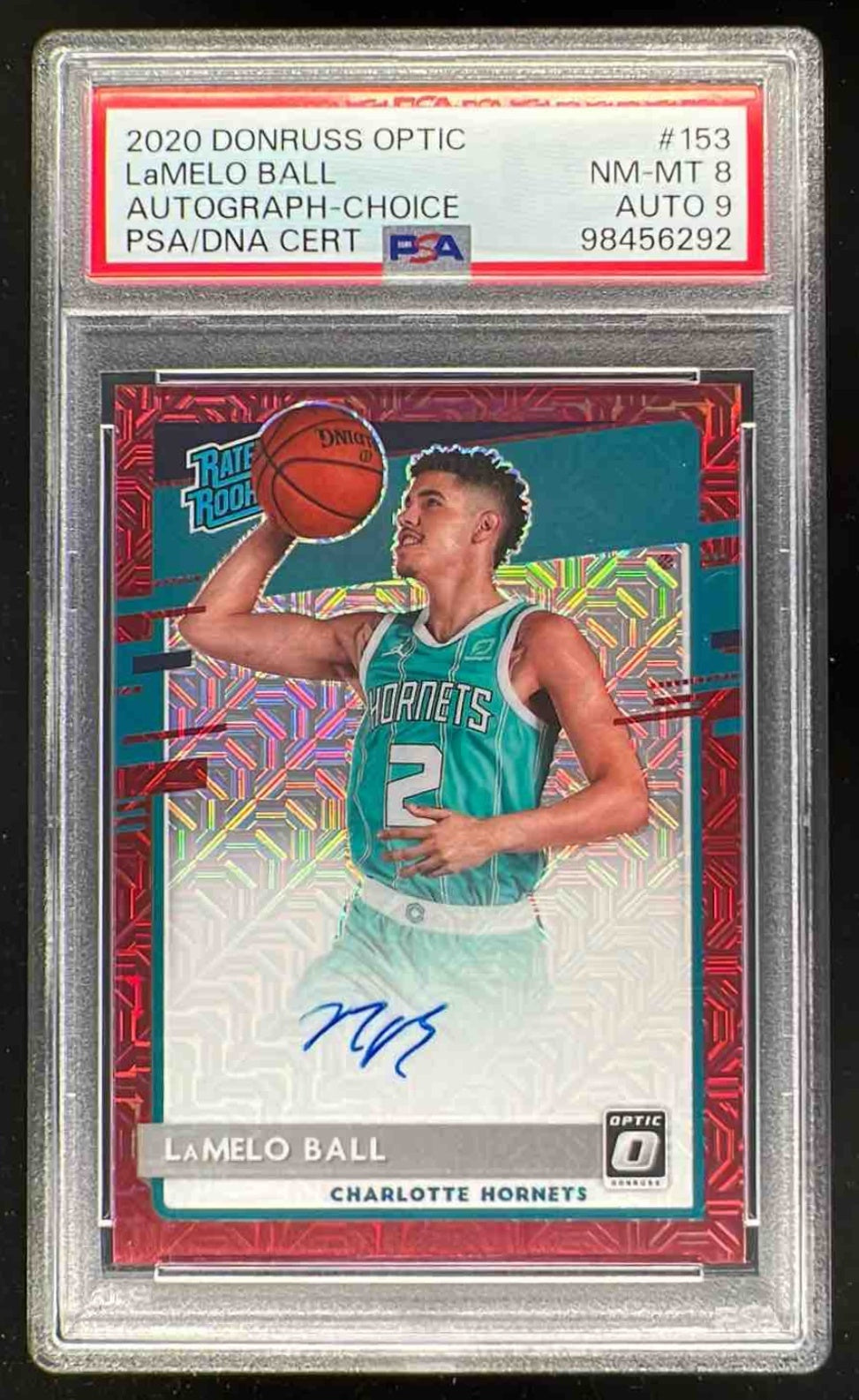 2020-21 Donruss Optic Rated Rookies Signatures Choice LaMelo Ball RC Auto PSA 8