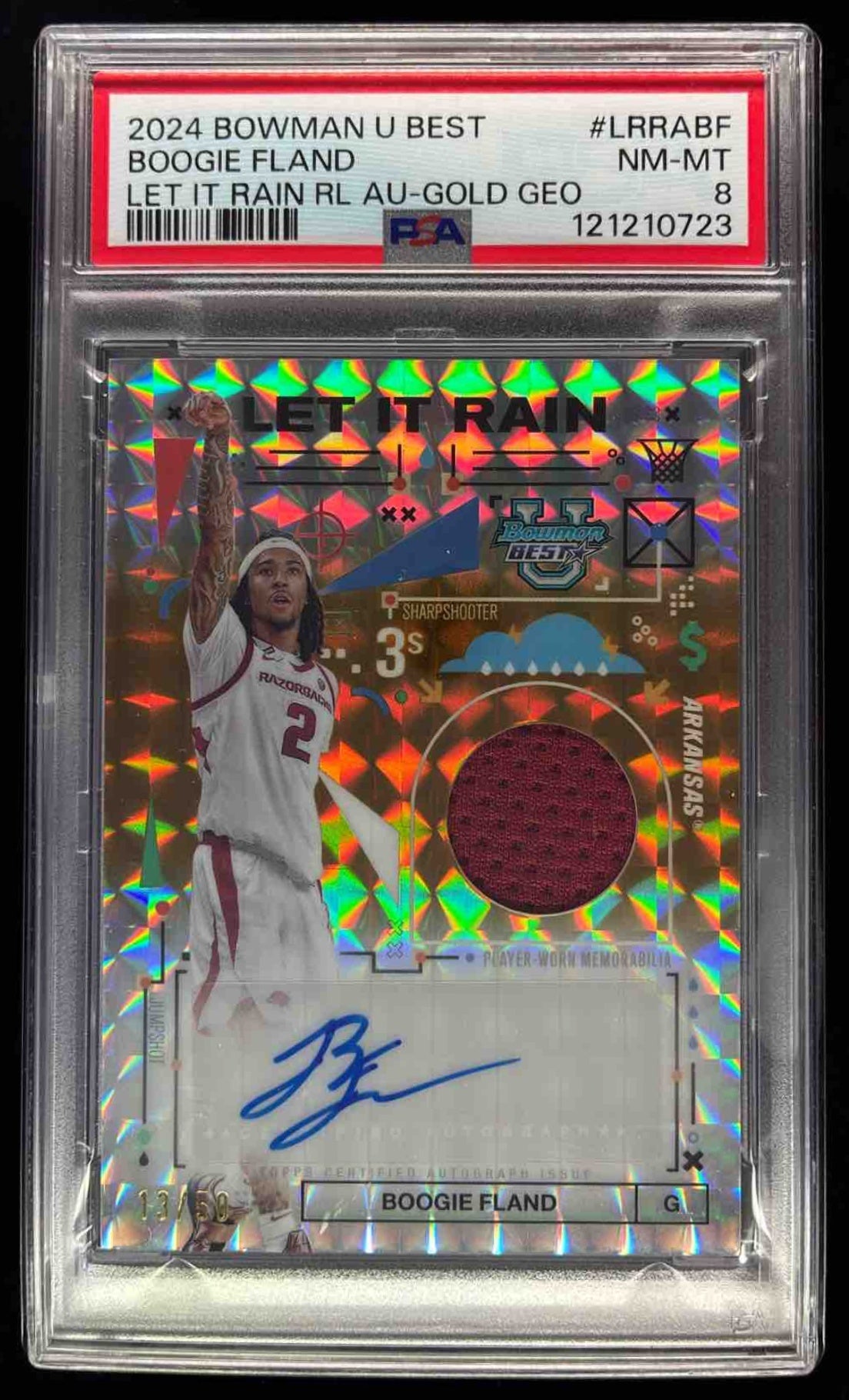 2024 Bowman's Best Let It Rain Relic Gold Geometric Boogie Fland Auto /50 PSA 8