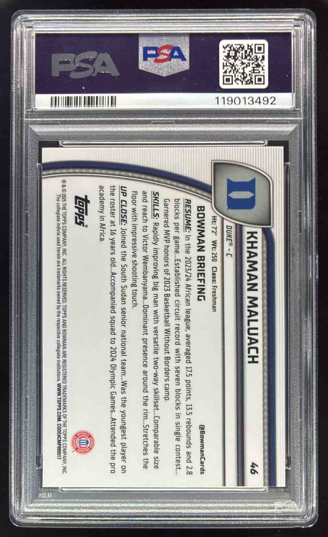 2024-25 Bowman University Chrome Reptilian Blue #46 Khaman Maluach /150 PSA 10