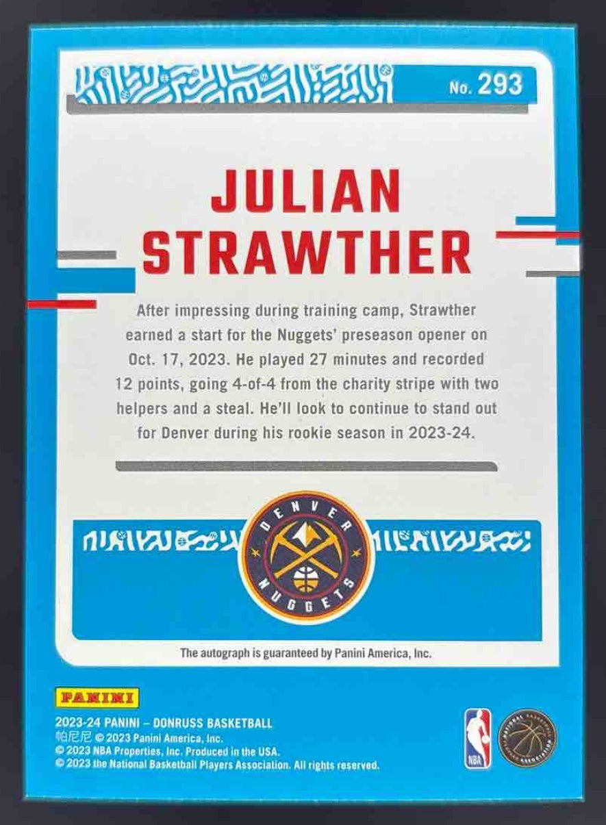 2023 Panini Donruss Rated Rookie Signatures Choice #293 Julian Strawther RC Auto