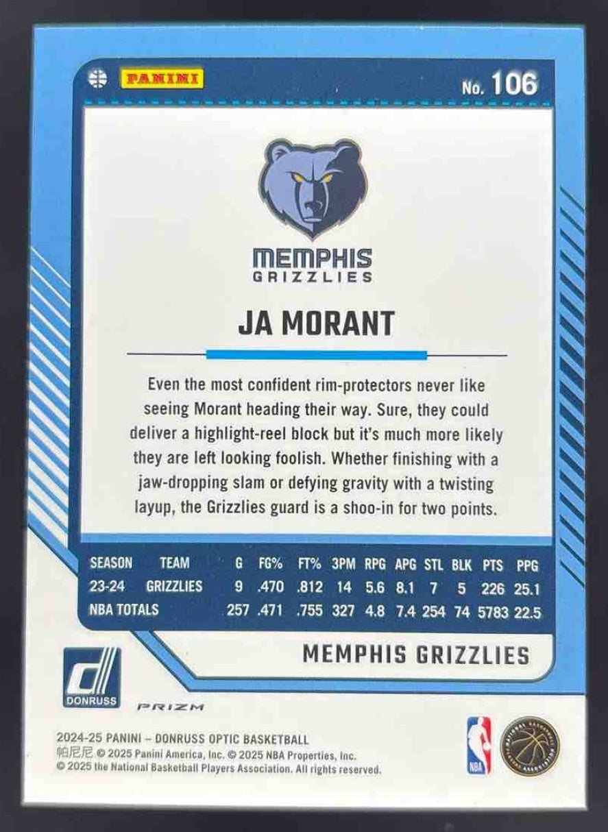 2024-25 Panini Donruss Optic Checkerboard #106 Ja Morant