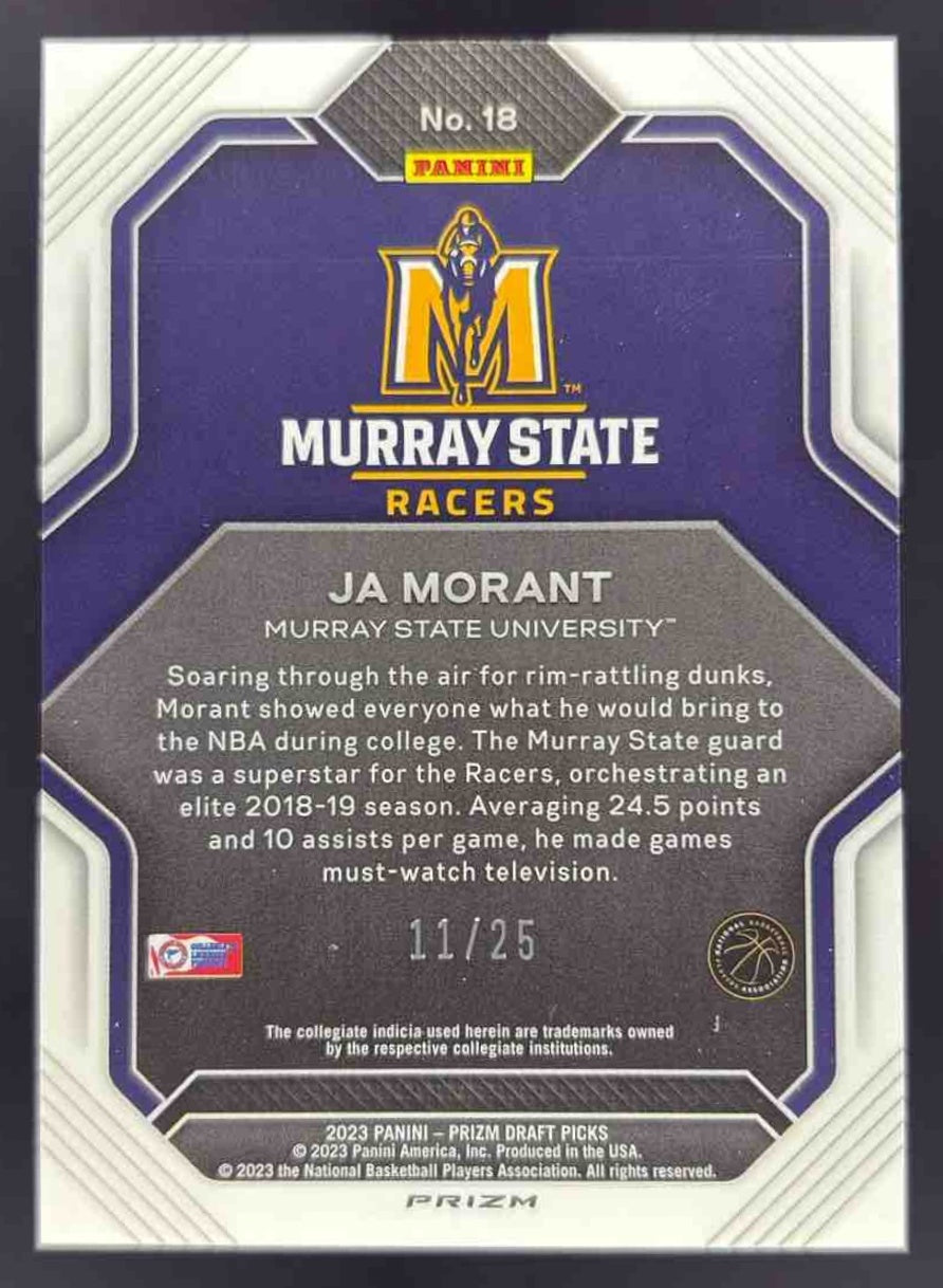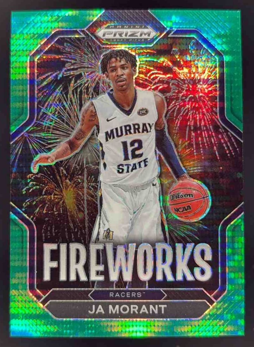 2023-24 Panini Prizm Draft Picks Fireworks Green Pulsar #18 Ja Morant /25