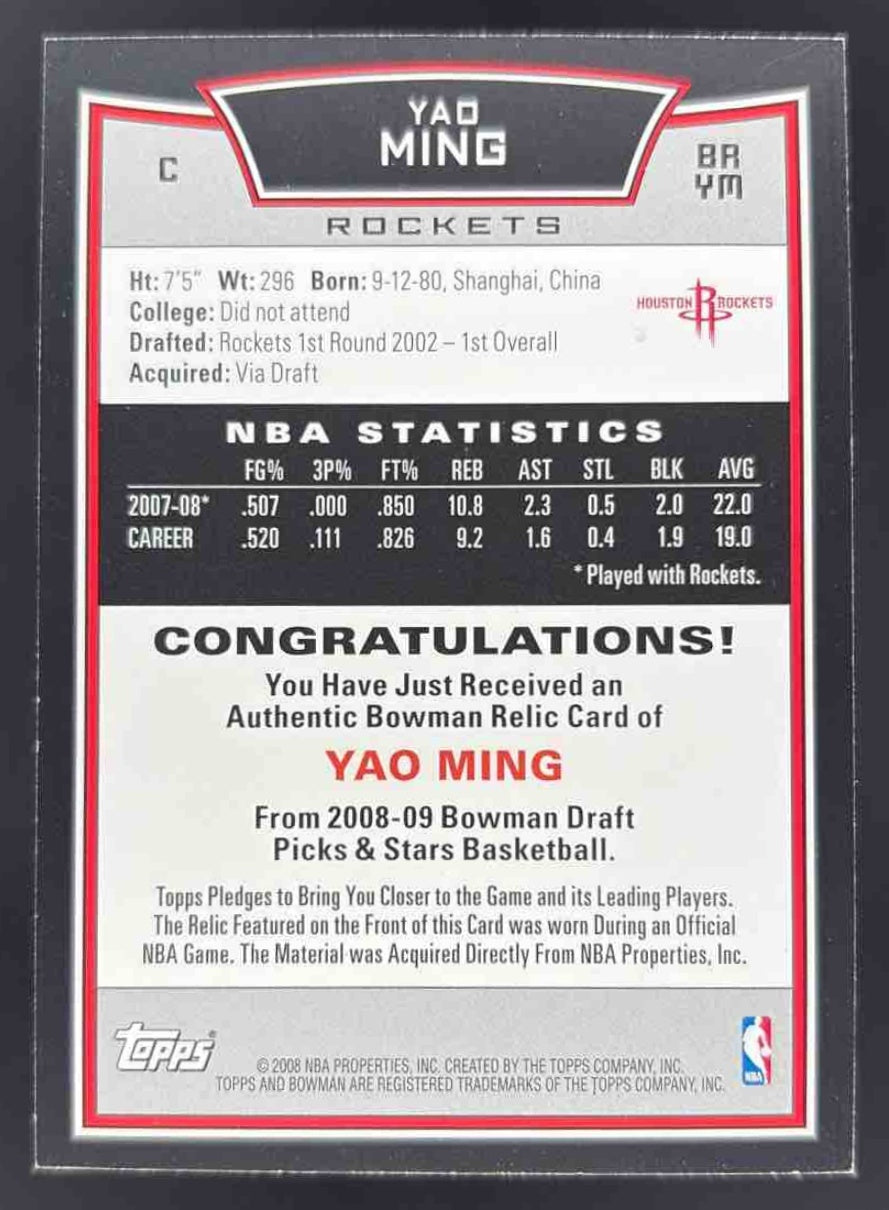 2008-09 Bowman Relics #BRYM Yao Ming