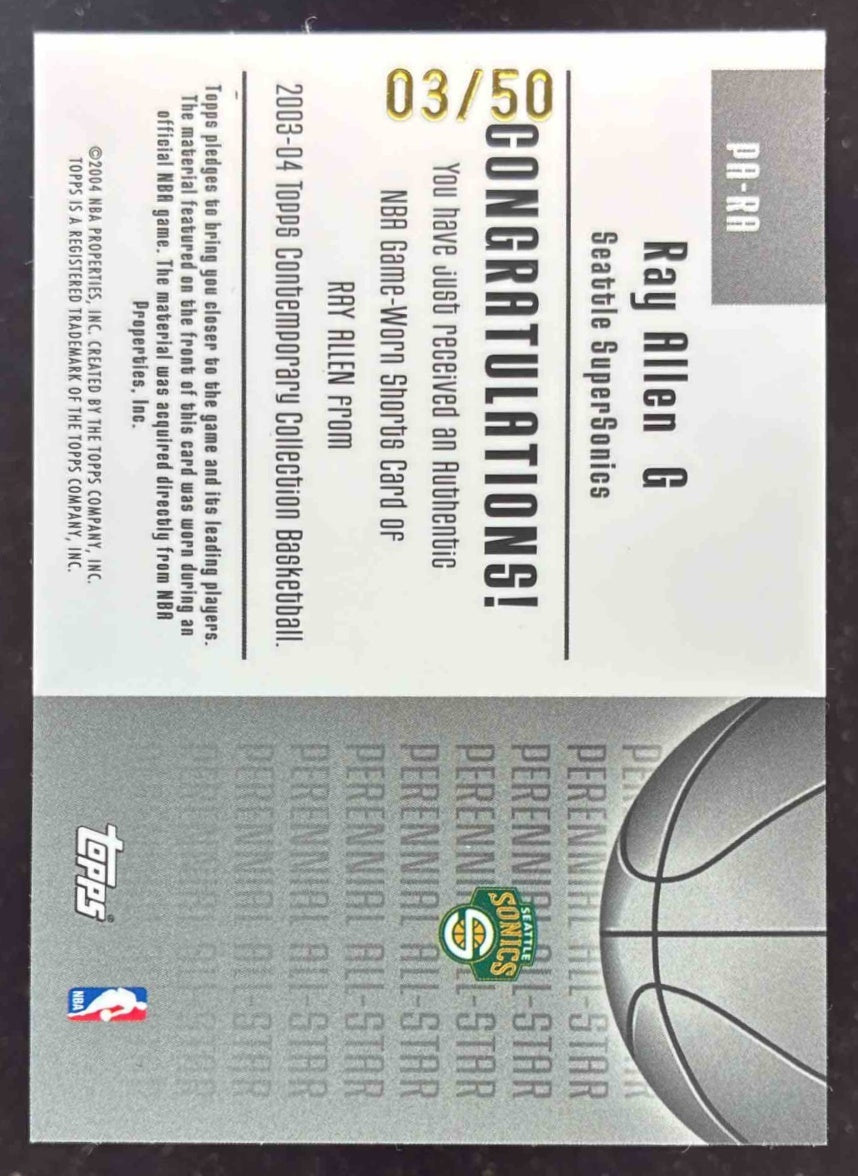 2003-04 Topps Contemporary Perennial All Star Relics Red #PA-RA Ray Allen /50
