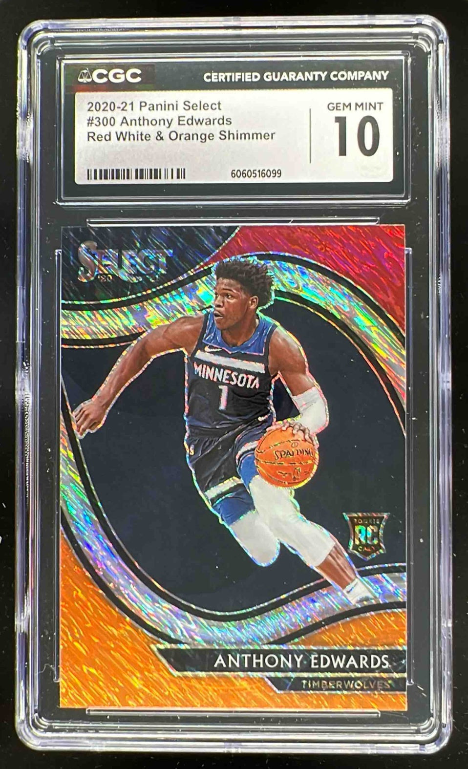 2020-21 Select Red White Orange Shimmer #300 Anthony Edwards RC Courtside CCG 10