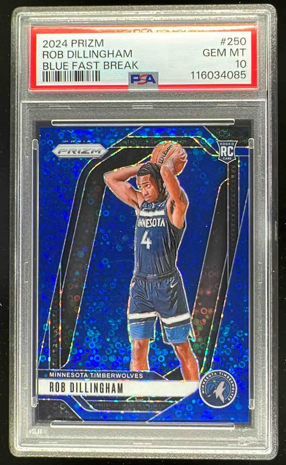 2024-25 Panini Prizm Fast Break Blue Prizm #250 Rob Dillingham RC /150 PSA 10