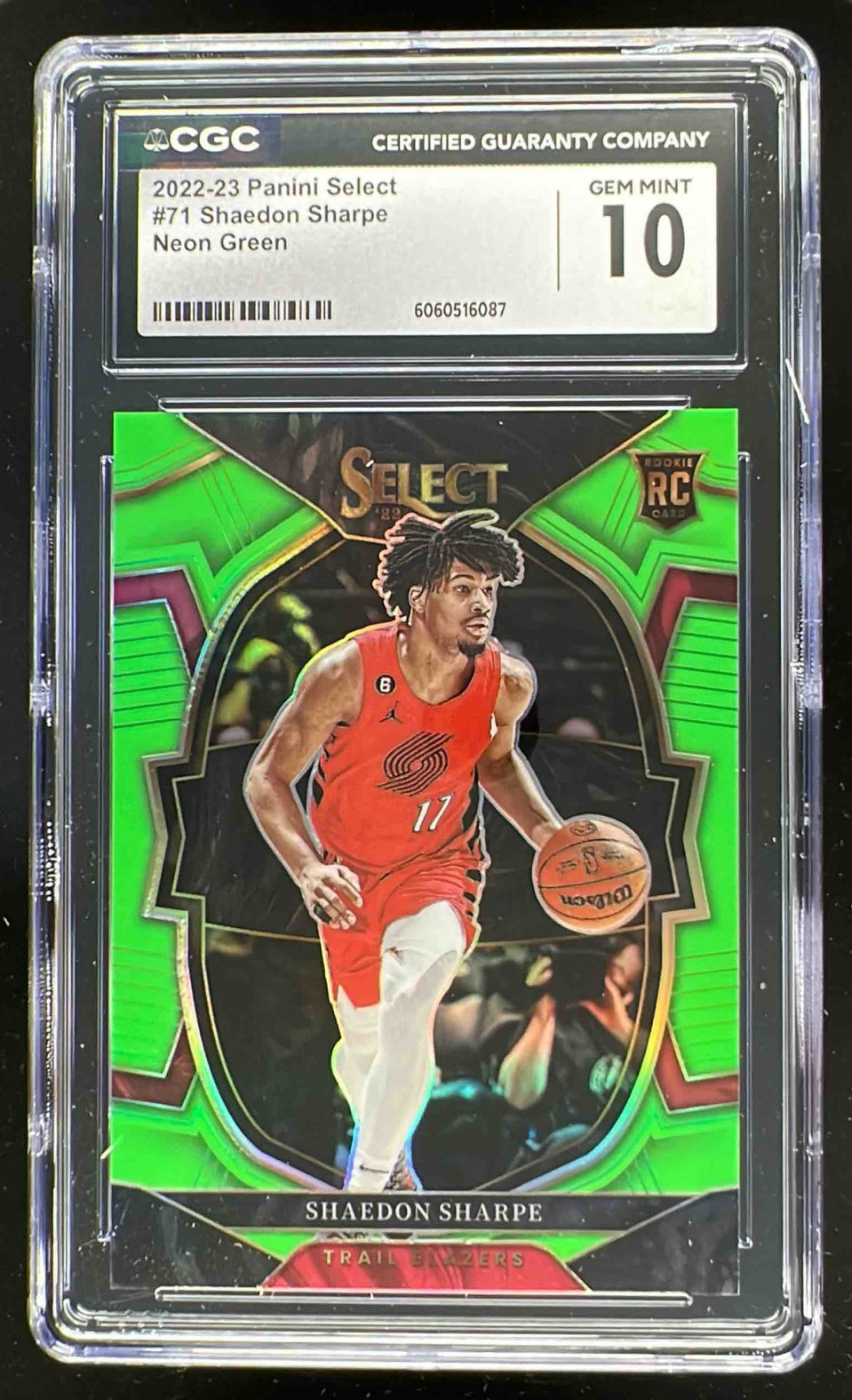 2022 Panini Select Neon Green Prizms #71 Shaedon Sharpe RC Concourse /75 CCG 10