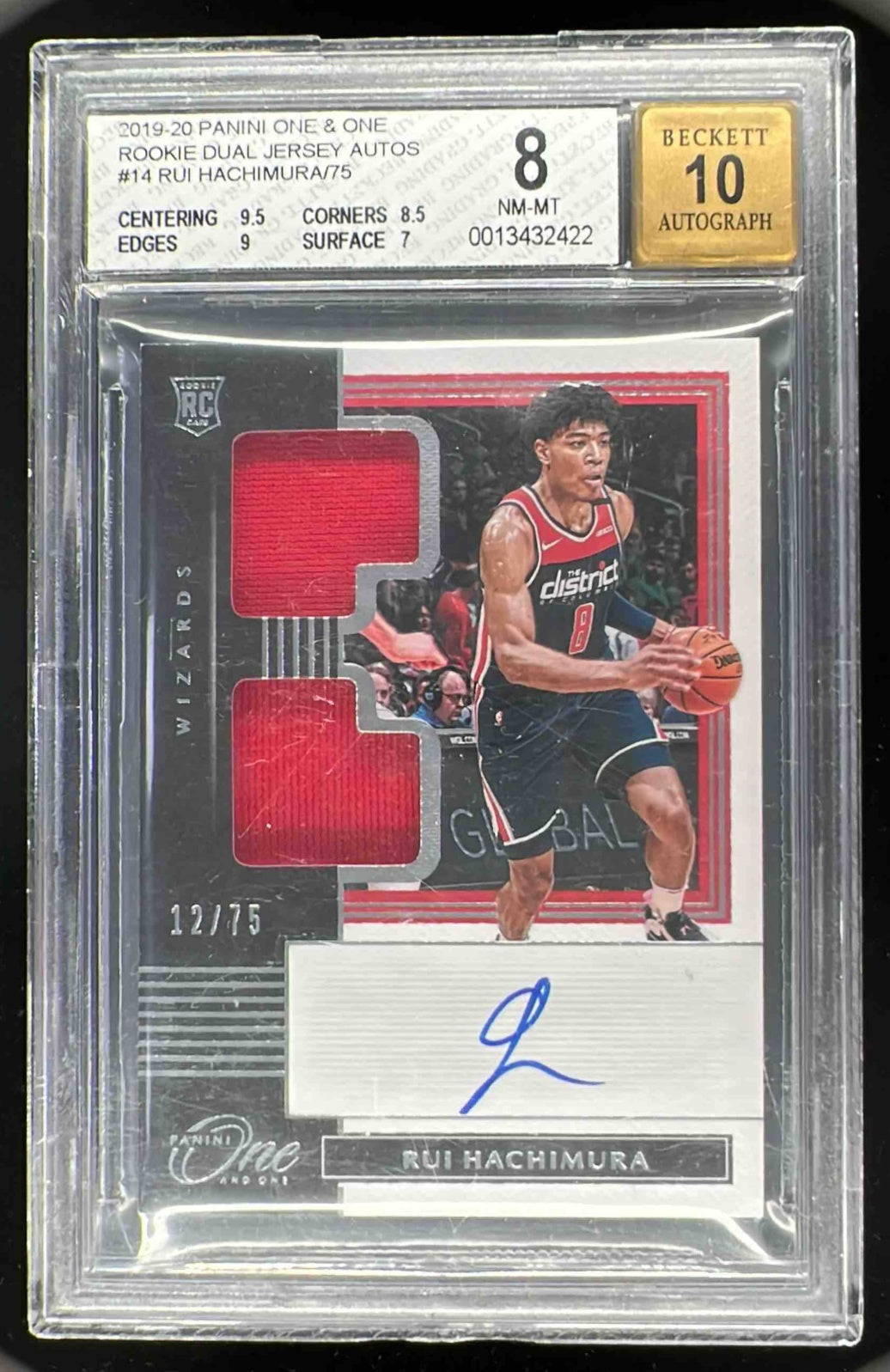 2019-20 Panini One and One Rookie Dual Jersey Auto Rui Hachimura RC /75 BGS 8