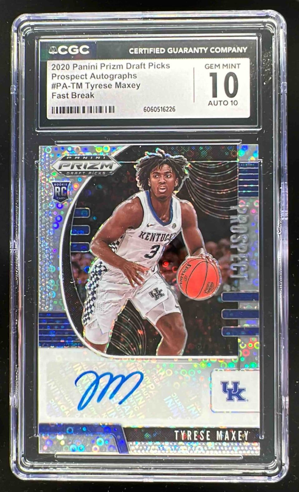 2020 Panini Prizm Draft Collegiate Fast Break Silver Tyrese Maxey RC Auto CCG 10