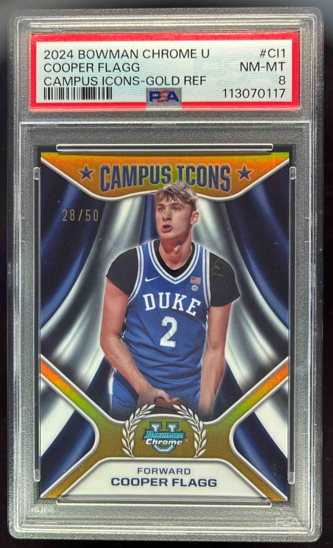 2024-25 Bowman University Chrome Campus Icons Gold #CI-1 Cooper Flagg /50 PSA 8