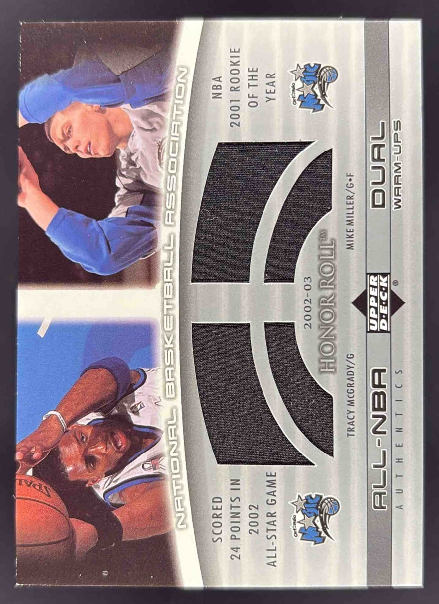 2002 UD Honor Roll All NBA Authentics Dual Warm ups Tracy McGrady Mike Miller