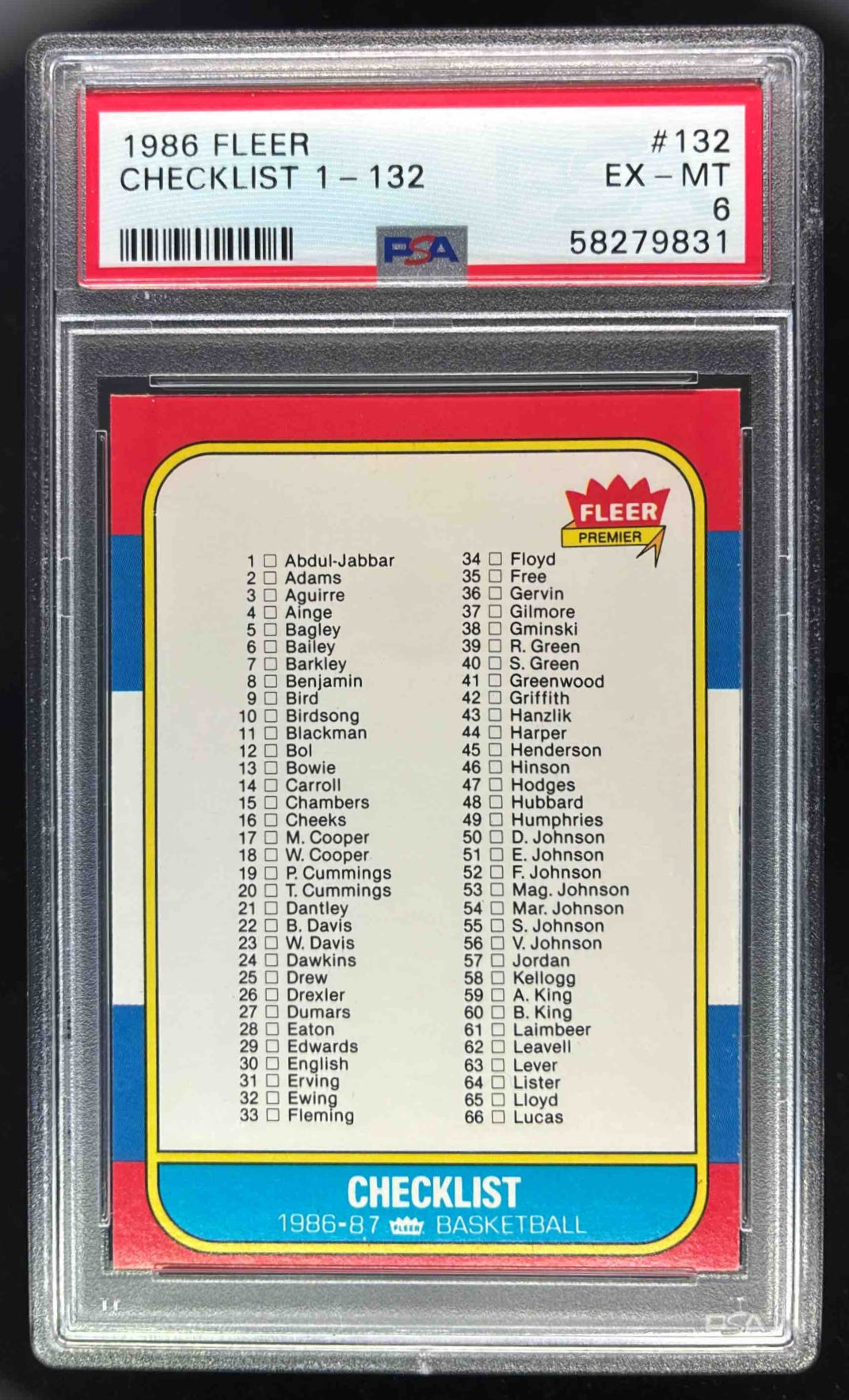1986-87 Fleer #132 Checklist PSA 6