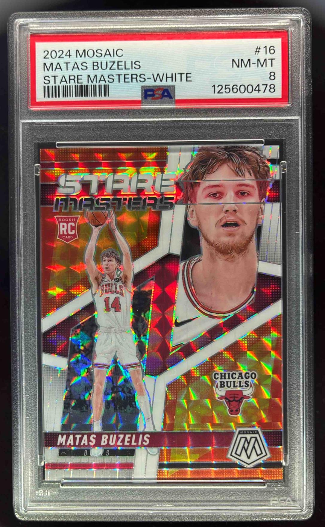 2024-25 Panini Mosaic Stare Master White Mosaic #16 Matas Buzelis RC /25 PSA 8