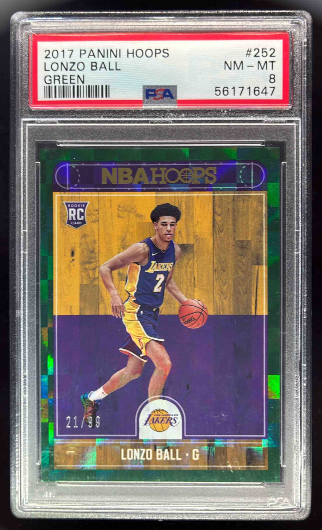 2017-18 Panini Hoops Green #252 Lonzo Ball RC /99 PSA 8