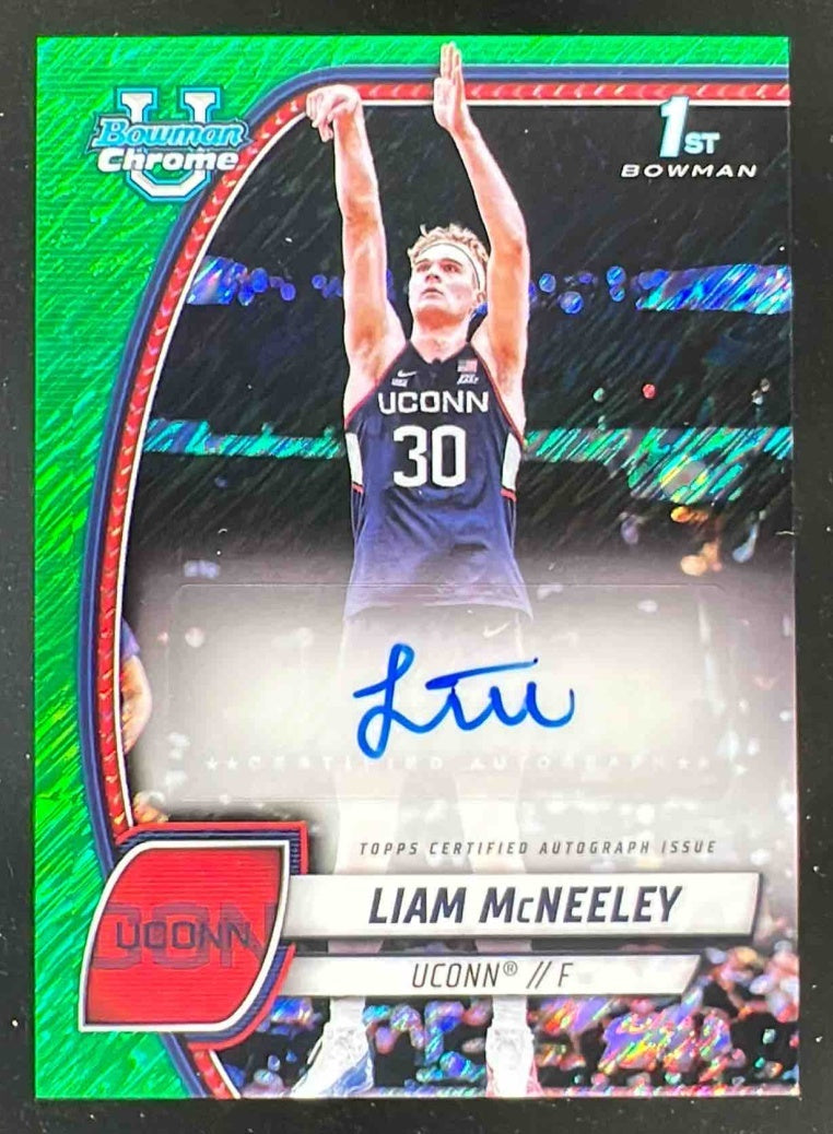 2024-25 Bowman University Chrome Green Shimmer Refractor #52 Liam McNeeley Auto