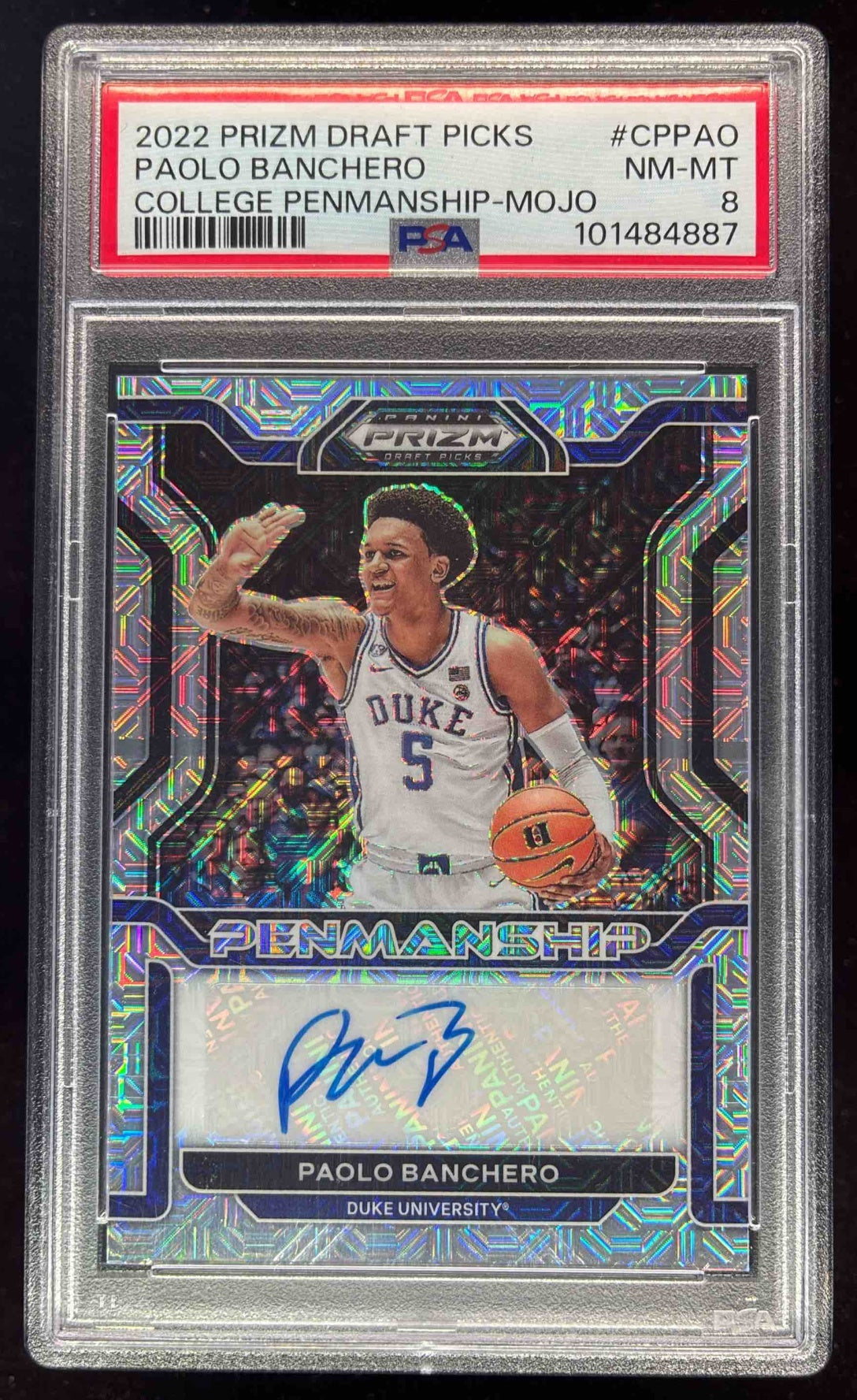 2022 Panini Prizm Draft College Penmanship Mojo Paolo Banchero RC Auto /25 PSA 8