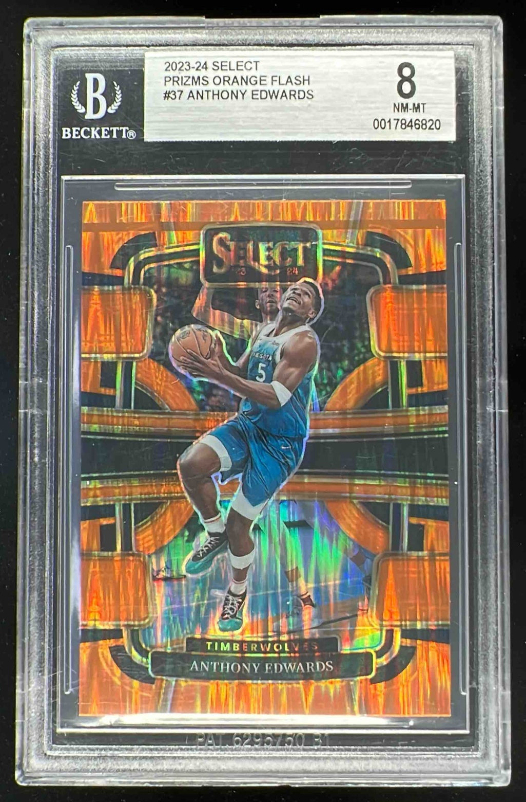 2023-24 Panini Select Orange Flash Prizms #37 Anthony Edwards Concourse BGS 8