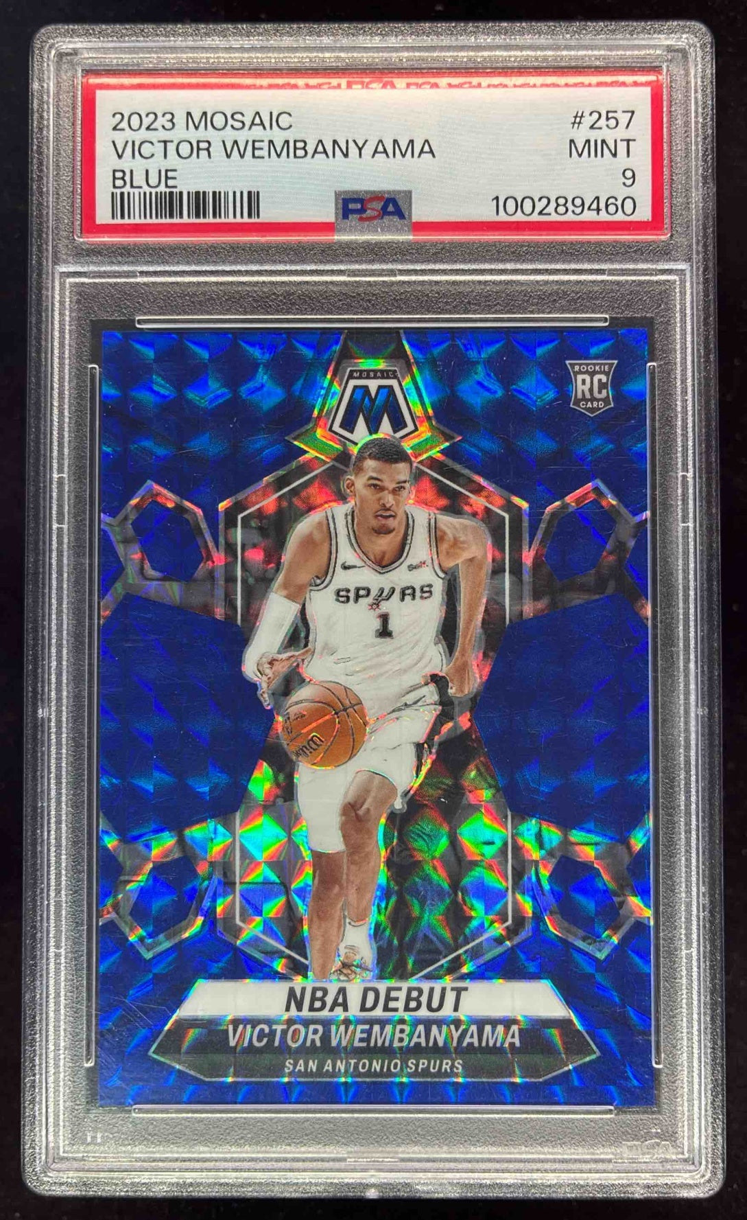 2023-24 Panini Mosaic Blue #257 Victor Wembanyama NBA Debut RC /199 PSA 9