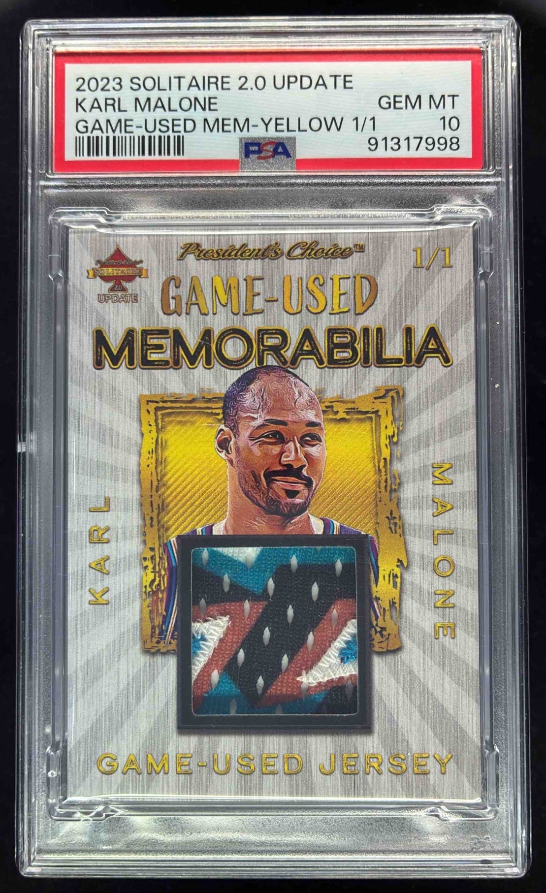 2023 Solitaire 2.0 Update Game Used Memorabilia Yellow Karl Malone 1/1 PSA 10