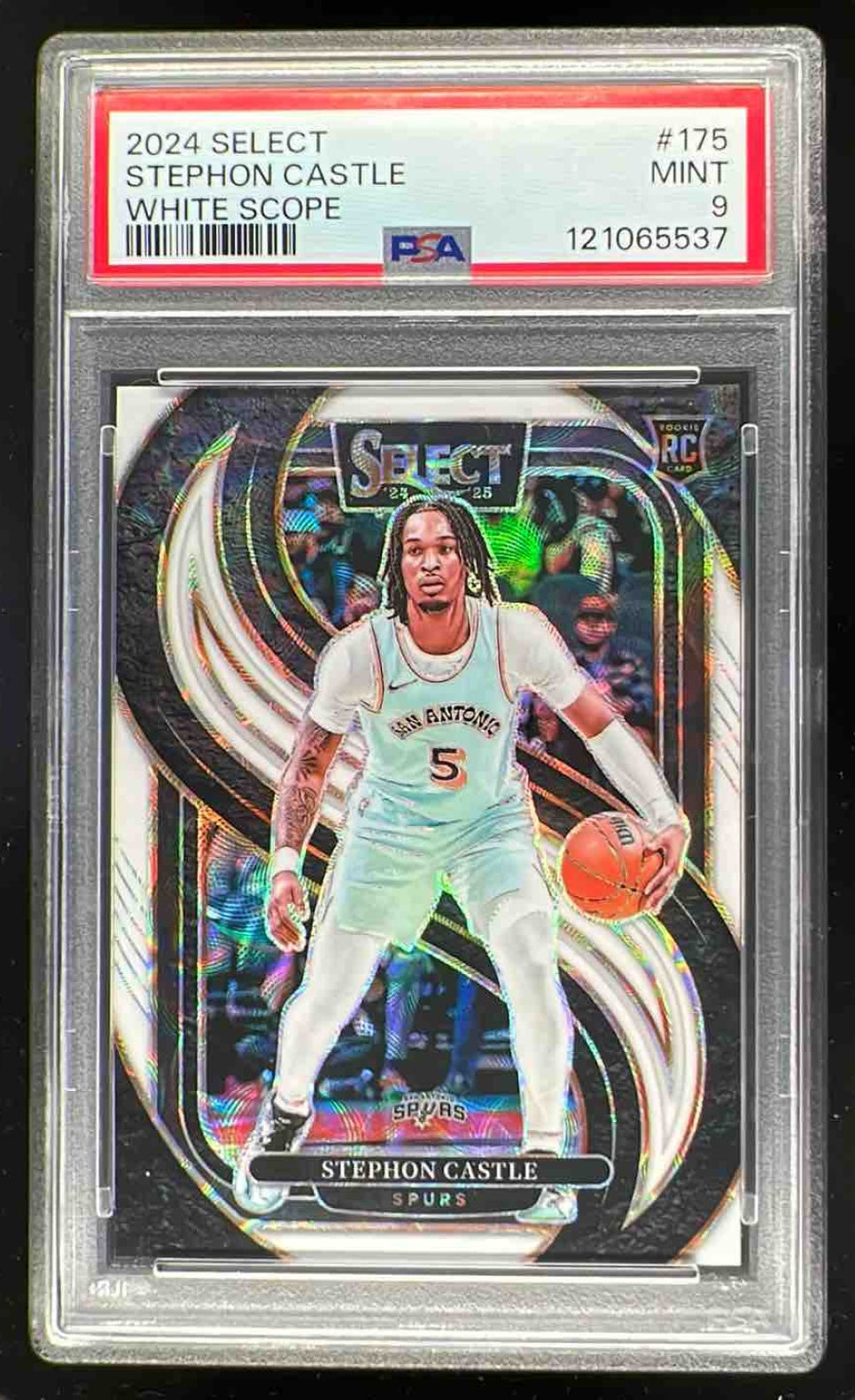 2024-25 Panini Select Premier White Scope Prizm #175 Stephon Castle RC /35 PSA 9