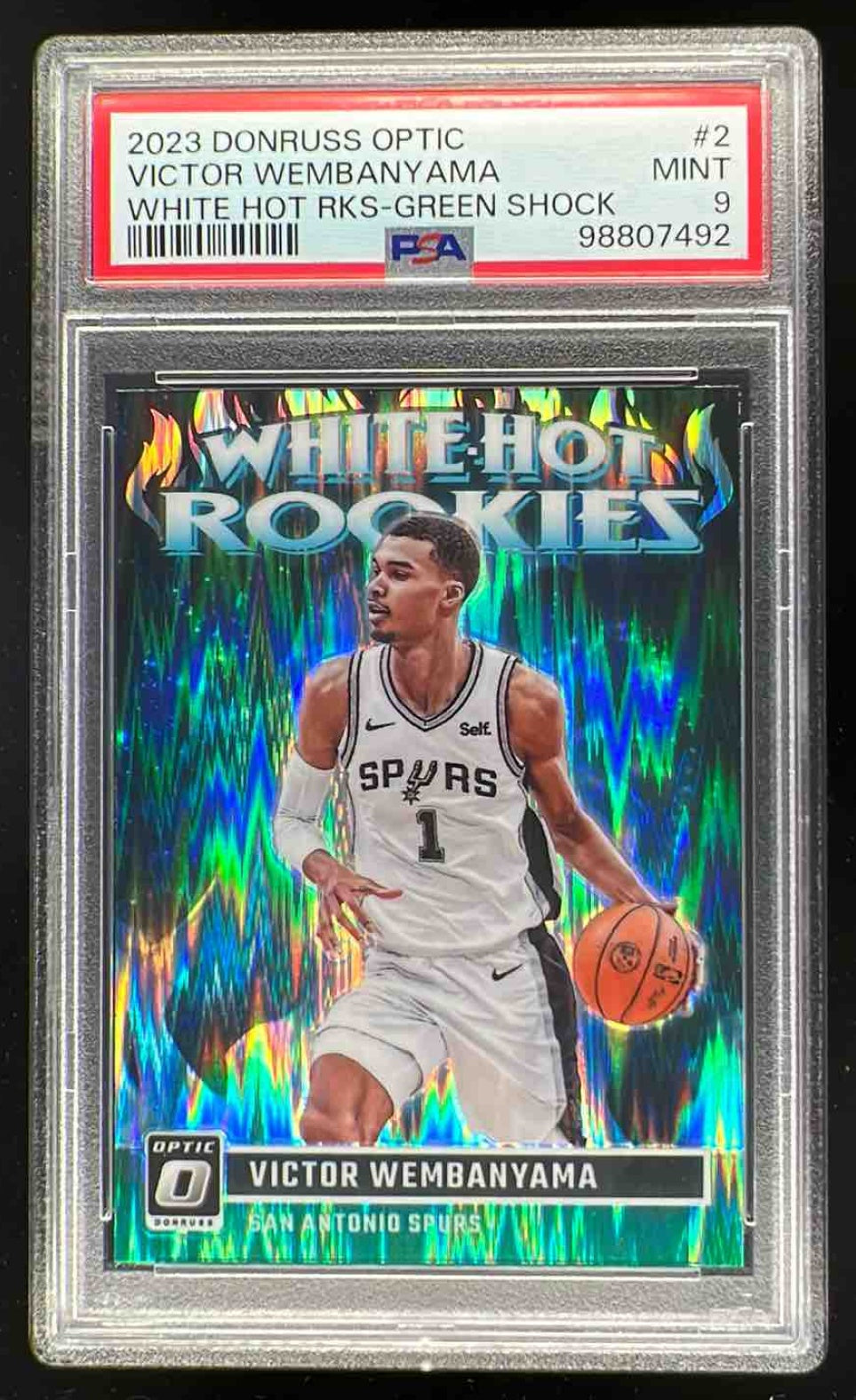 2023 Donruss Optic White Hot Rookies Green Shock #2 Victor Wembanyama RC PSA 9