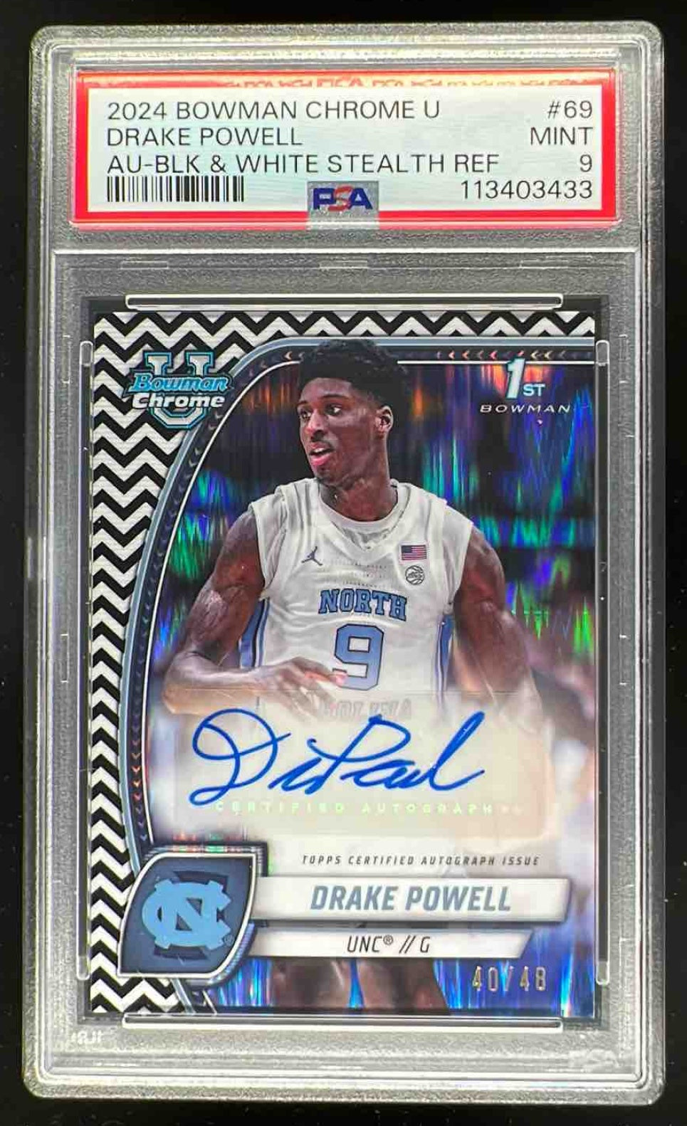 2024-25 Bowman University Chrome Black White Stealth Drake Powell Auto /48 PSA 9
