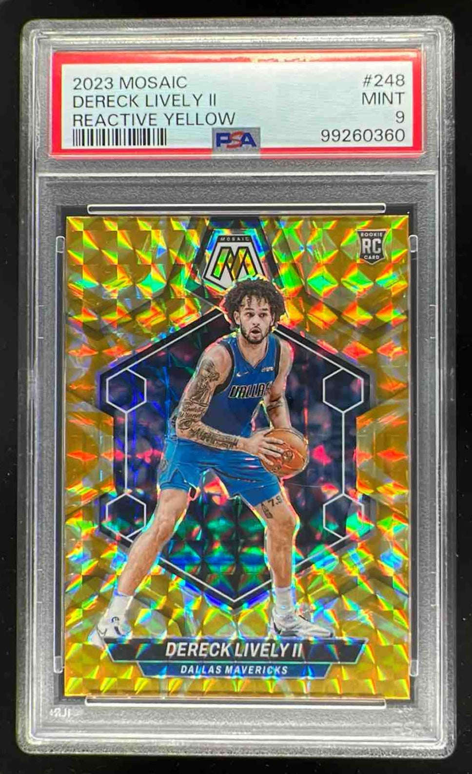 2023-24 Panini Mosaic Reactive Yellow Prizm #248 Dereck Lively II RC PSA 9
