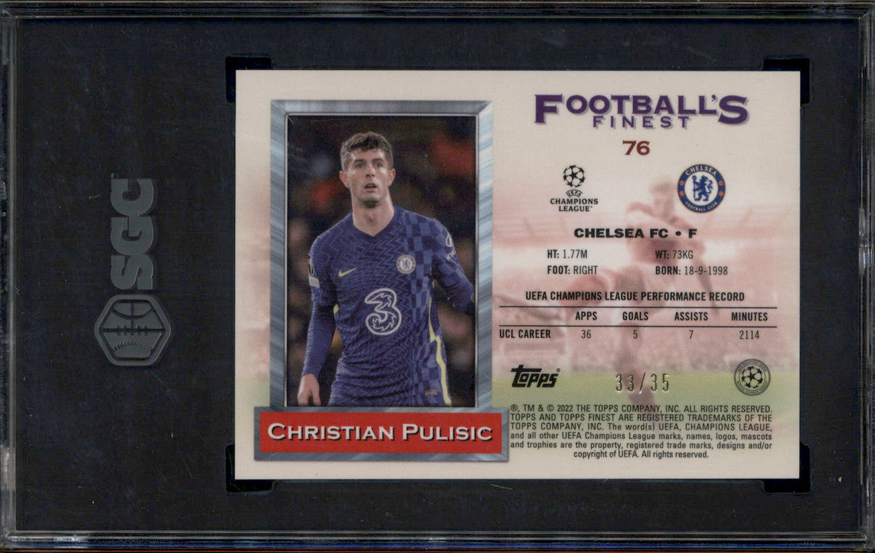 2021 Topps Finest Flashbacks UCL Prism Refractor Christian Pulisic /35 SGC 10
