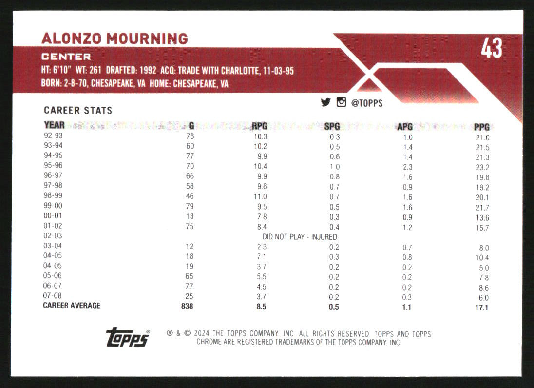 2023-24 Topps Chrome Orange Geometric Refractors #43 Alonzo Mourning /25